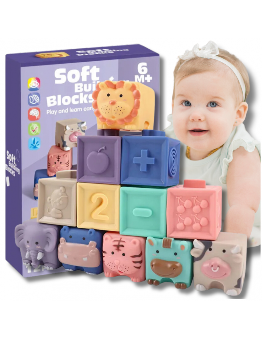 ⭐Miękkie kreatywne klocki sensoryczne dla niemowląt dzieci funkcja gryzaka 12 el.
