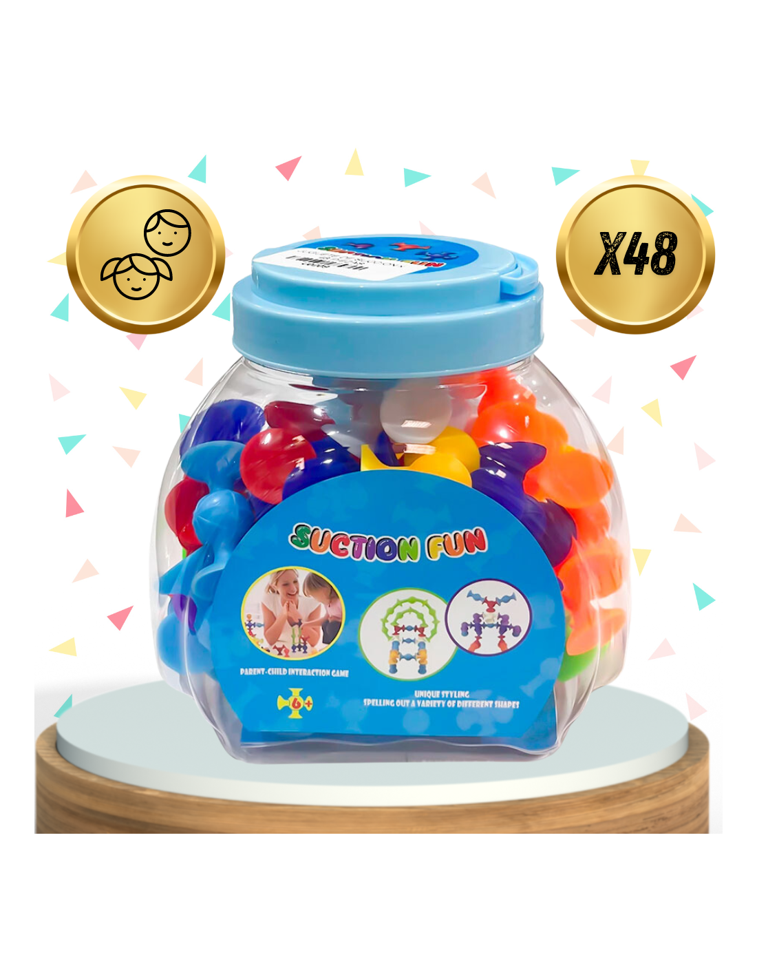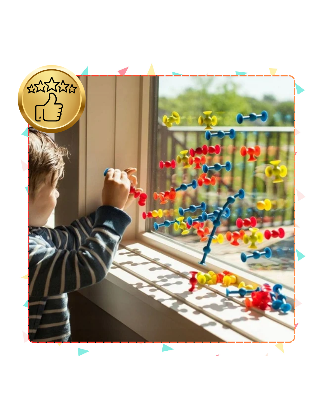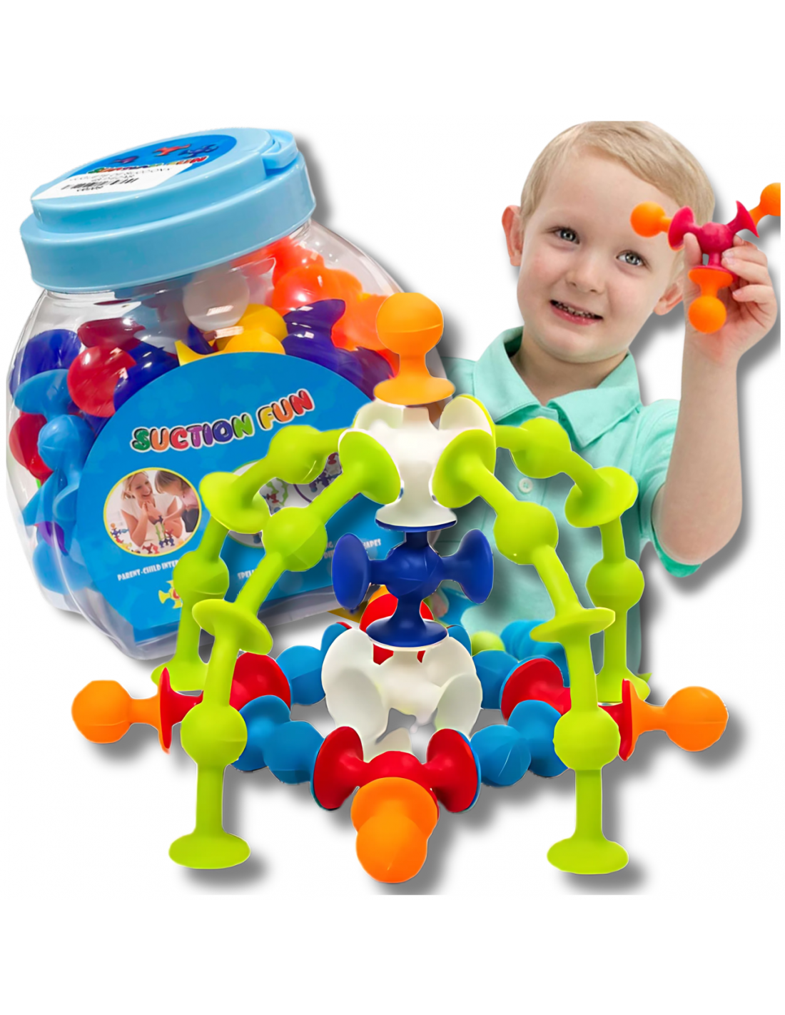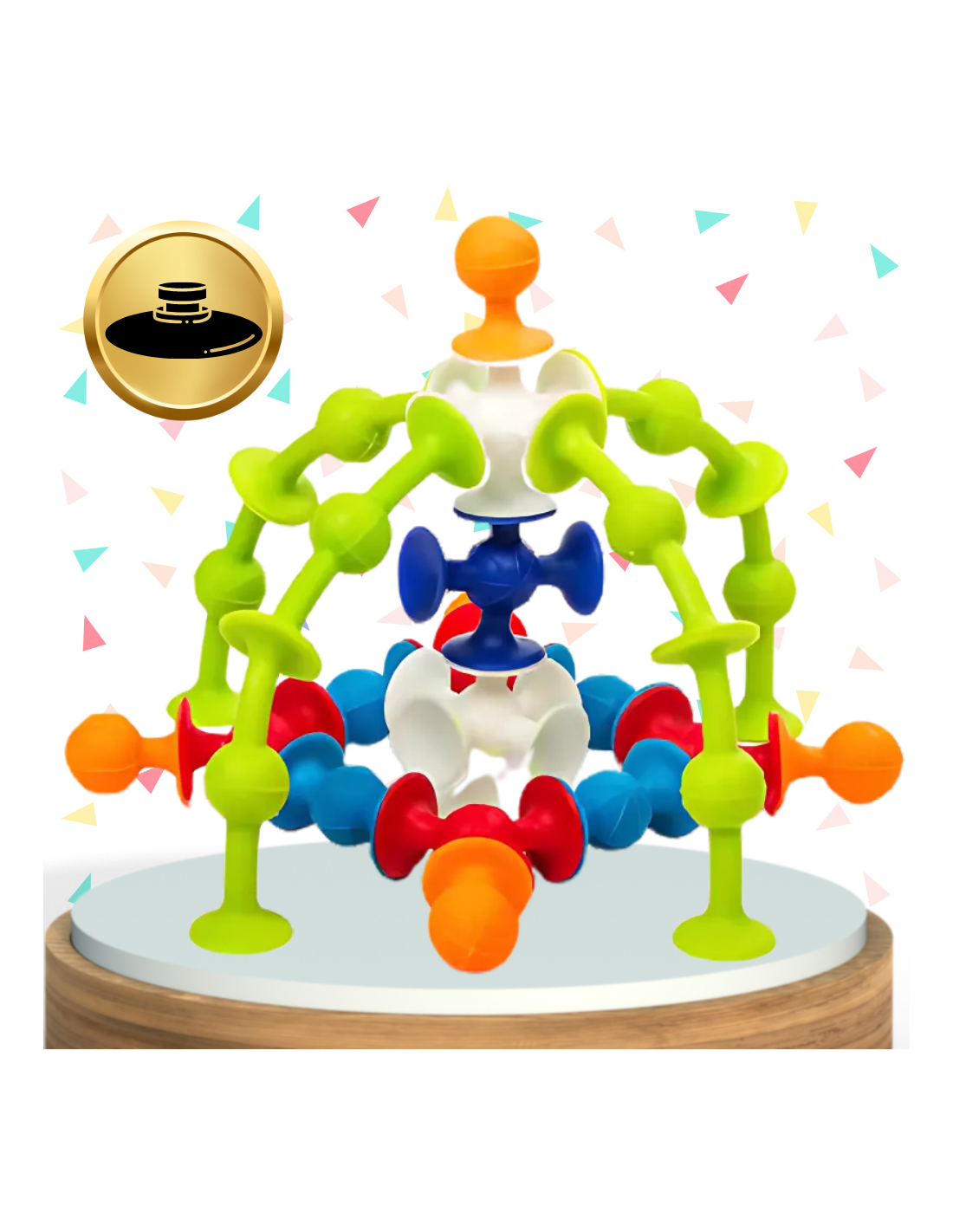 Dzięki innowacyjnej konstrukcji z przyssawkami, klocki trzymają się różnych powierzchni, co umożliwia budowanie trójwymiarowych konstrukcji i kreatywnych projektów.
