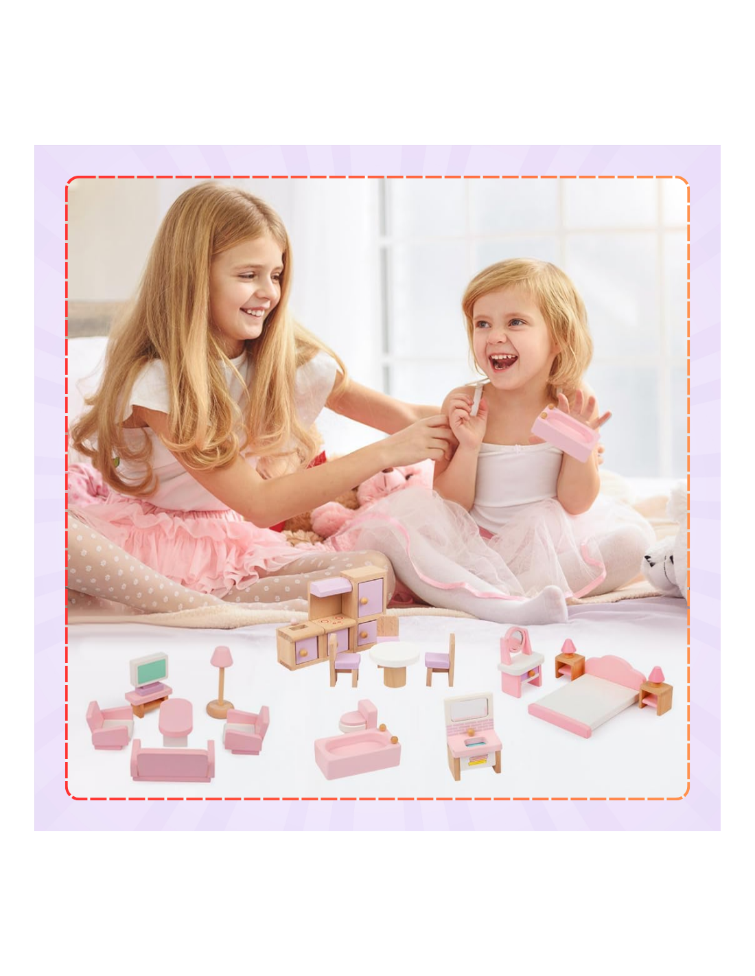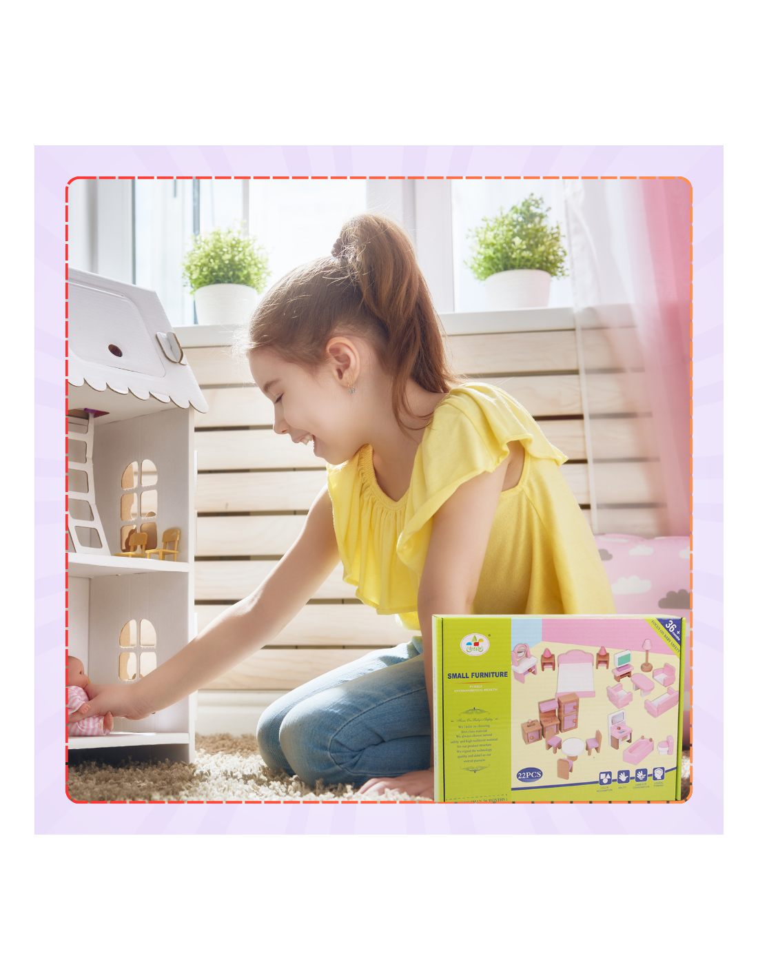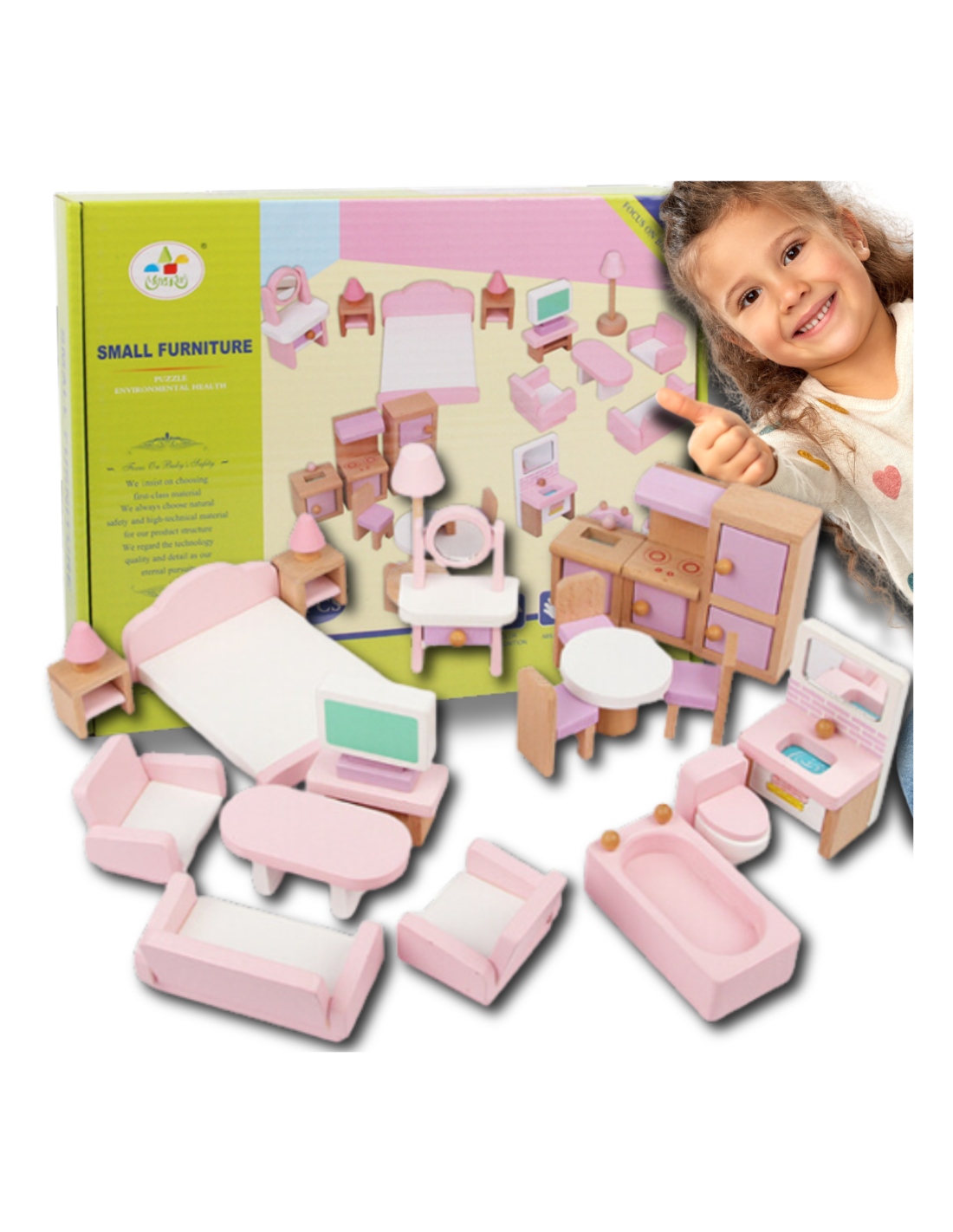 ⭐DREWNIANE MEBELKI DLA LALEK 22 EL ZESTAW DO ZABAWY DLA DZIECI DO DOMKU