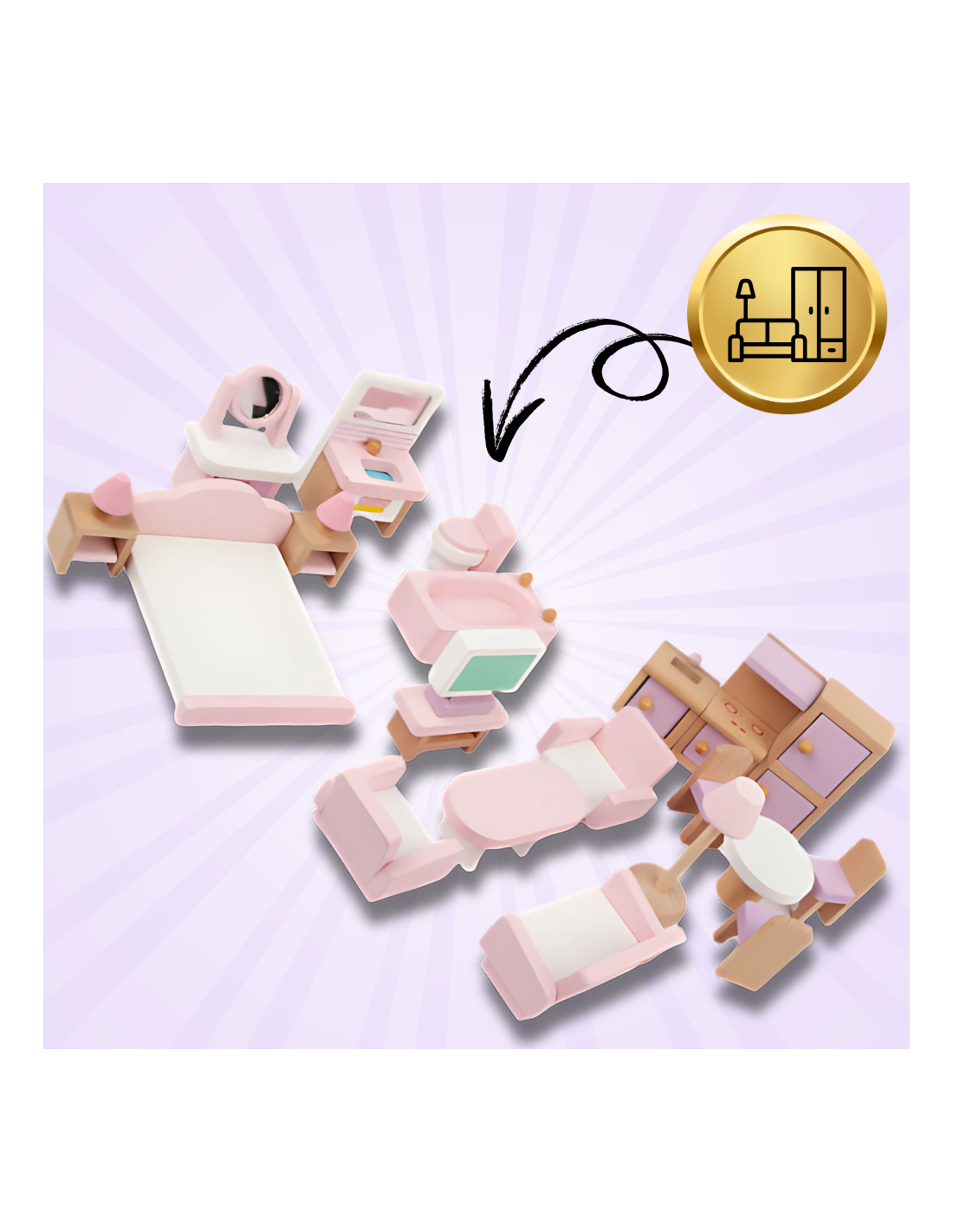 ⭐️Stwórz wymarzony świat dla lalek z naszym zestawem Drewnianych Mebelków dla Lalek! Ten 22-elementowy komplet oferuje wszystko, czego potrzeba twojemu dziecku do urządzenia czterech pomieszczeń – salonu, sypialni, łazienki i kuchni. Mebelki można dowolnie mieszać, co pozwala na unikalne aranżacje, a co najważniejsze – można się nimi bawić nawet bez domku dla lalek!