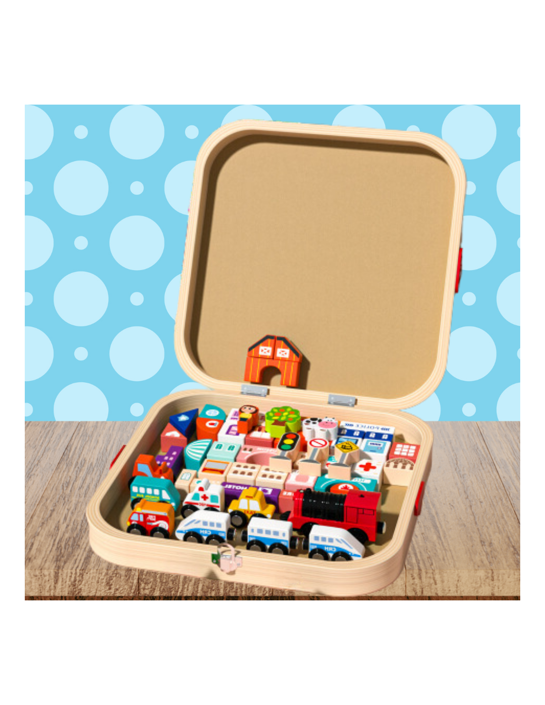 ⭐DREWNIANE KLOCKI EDUKACYJNE MIASTO LOKOMOTYWA ZESTAW SKRZYNKA DLA DZIECI