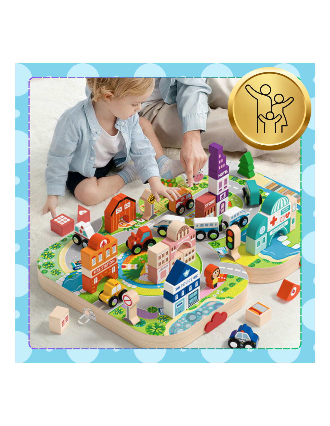 ✅Zabawa edukacyjna: Dziecko uczy się planowania przestrzennego, tworzenia i rozwiązywania sytuacji w interaktywnym miasteczku.