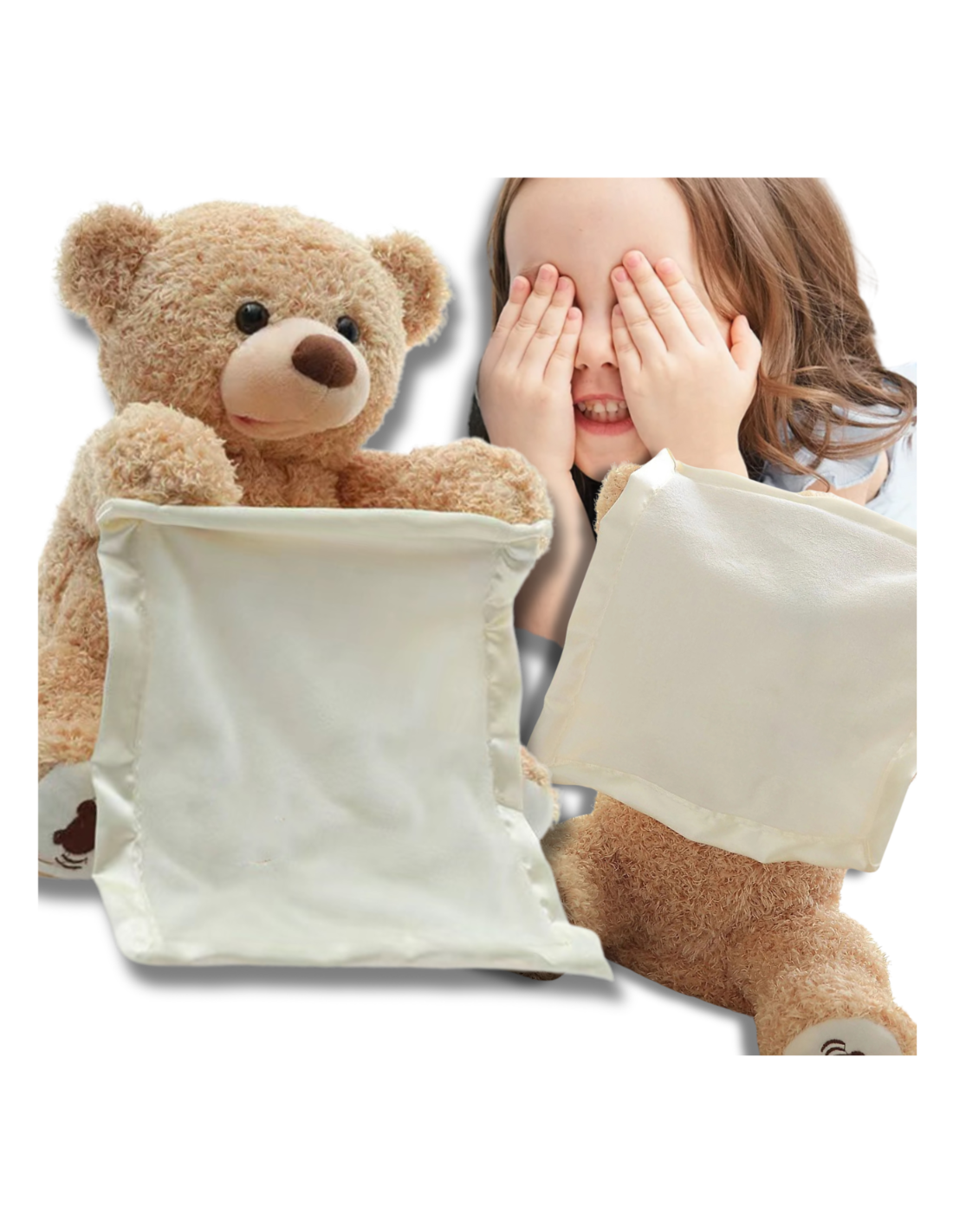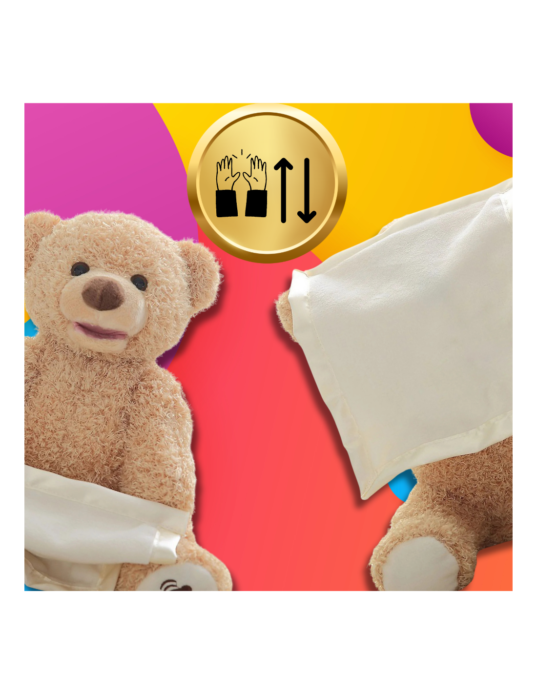 Po naciśnięciu przycisku na stopie misia, powoduje ucuchomienie go i zaczyna zabawę w chowanego:) Oraz zaczyna mówić po angielsku. "Where are you?" :) "Peek-A-Boo, I see you!"