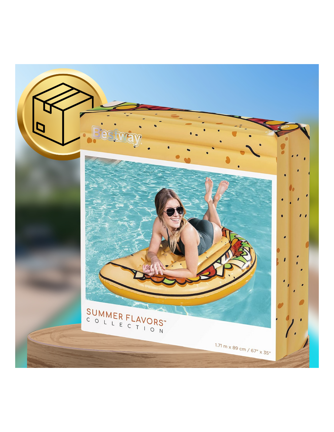 Odkryj przyjemność relaksu w wodzie z materacem dmuchanym BESTWAY w kształcie TACO XXL, idealnym do pływania w basenie, nad jeziorem czy na plaży. Wykonany z wysokiej jakości materiałów, ten duży materac zapewnia doskonałą stabilność i komfort, pozwalając cieszyć się dniem pełnym słońca i wodnych szaleństw. Dzięki jego dużym wymiarom, jest odpowiedni dla dorosłych oraz dzieci, co czyni go doskonałym wyborem dla całej rodziny. Materac jest łatwy w nadmuchiwaniu i spuszczaniu powietrza, co ułatwia transport i przechowywanie. Wzbogać swoje wakacyjne wspomnienia i zrelaksuj się na materacu, który z pewnością przyciągnie uwagę na każdej wyprawie.