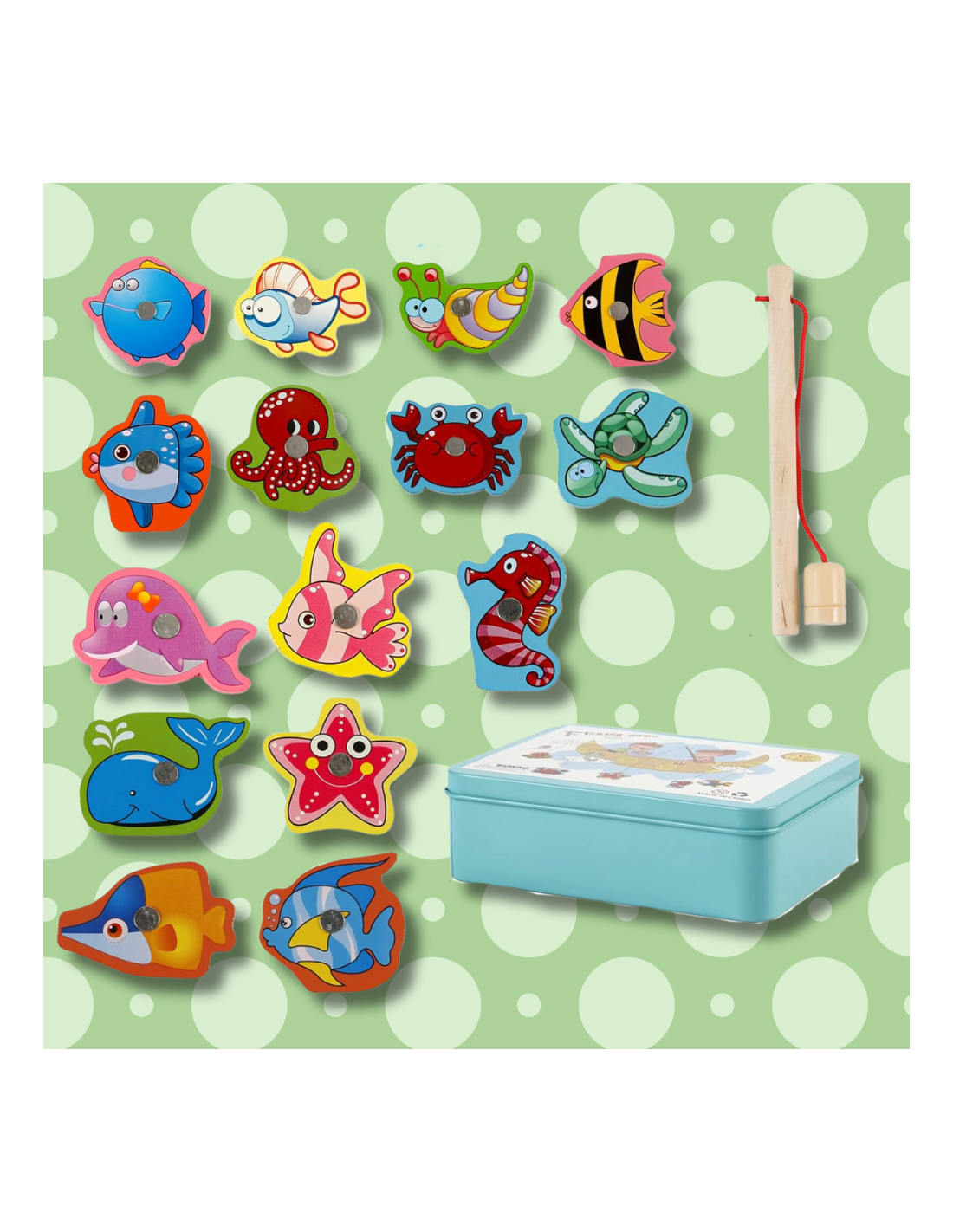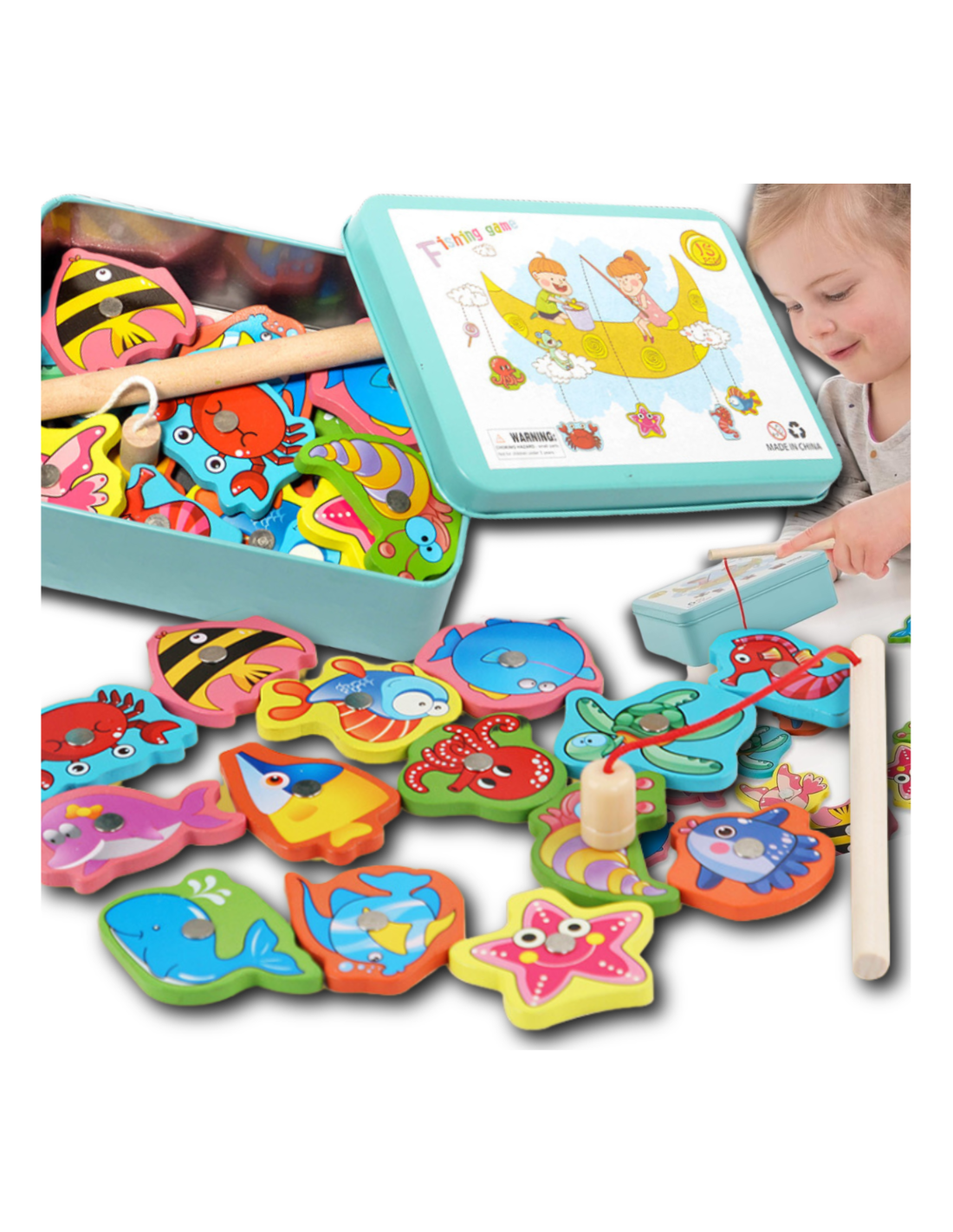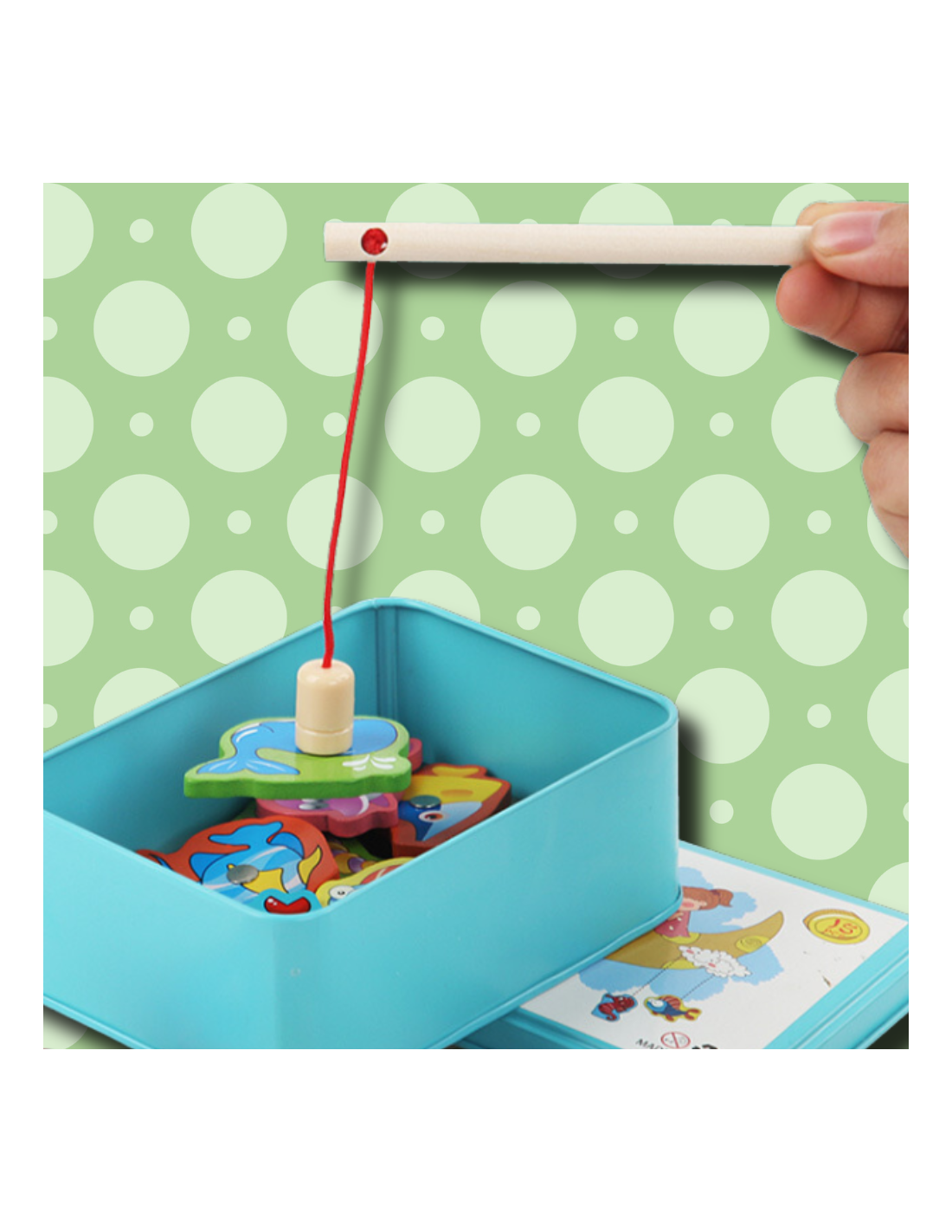 ⭐RYBKI DO ŁOWIENIA GRA ZRĘCZNOŚCIOWA WĘDKA DREWNIANE W METALOWEJ PUSZCE