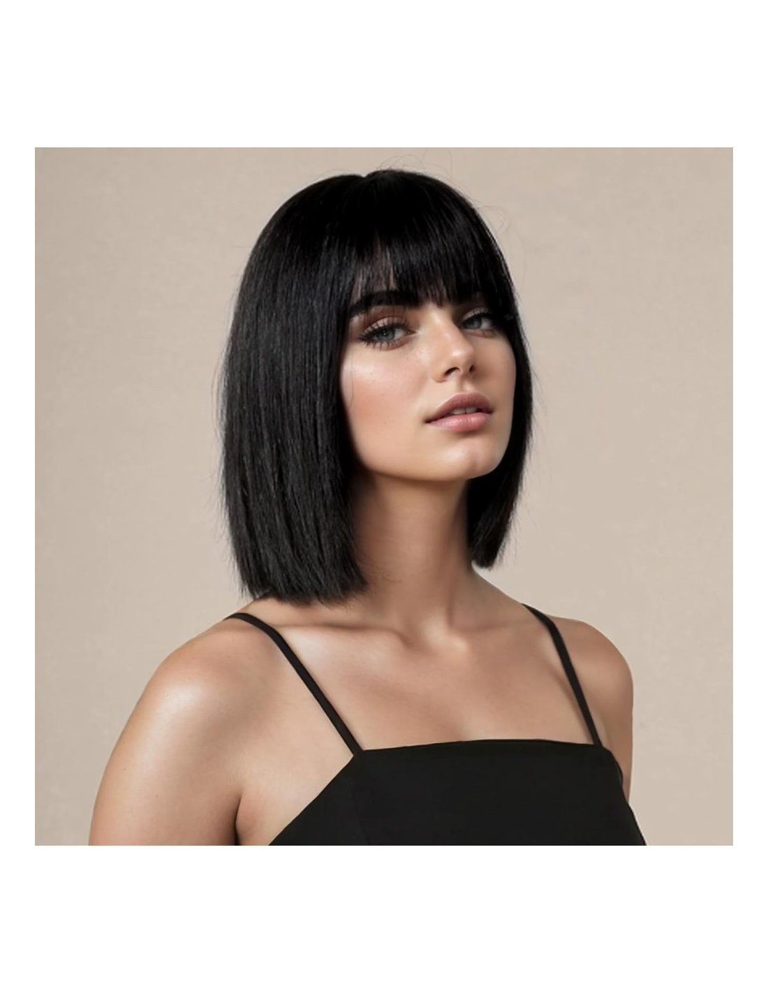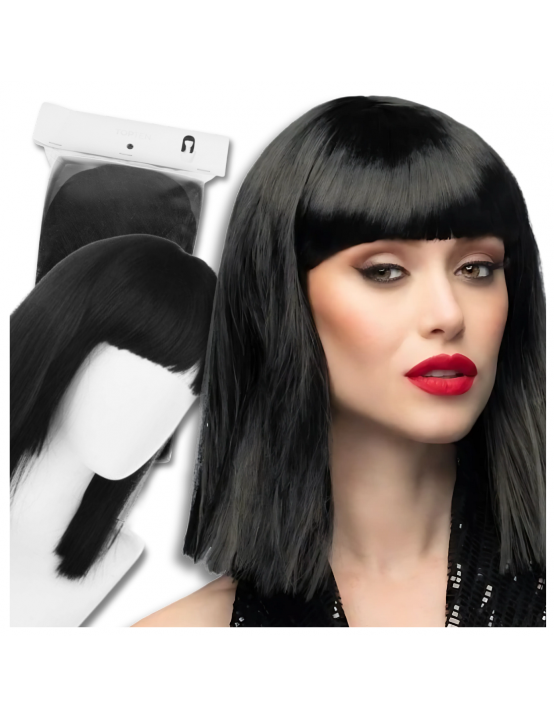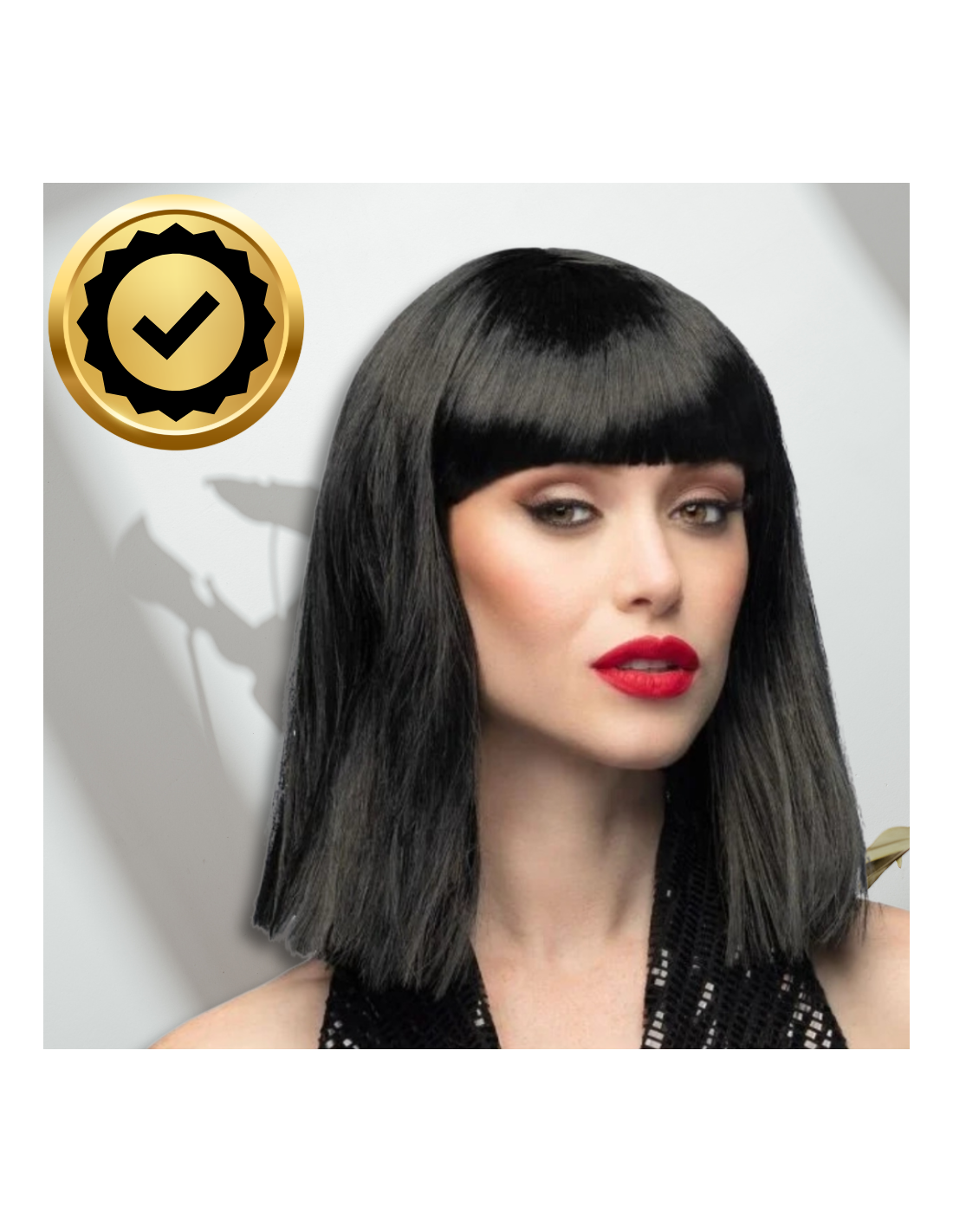 Przedstawiamy wyjątkową perukę z krótkich czarnych włosów z grzywką, idealną na różnorodne okazje, takie jak karnawał, imprezy tematyczne oraz sesje zdjęciowe. Wykonana z wysokiej jakości syntetycznych włosów, ta peruka łączy w sobie komfort noszenia z efektownym wyglądem. Jej stonowany kolor doskonale wkomponowuje się w wiele stylizacji, dodając elegancji oraz charakteru podczas wieczorów panieńskich, urodzin czy festiwali.