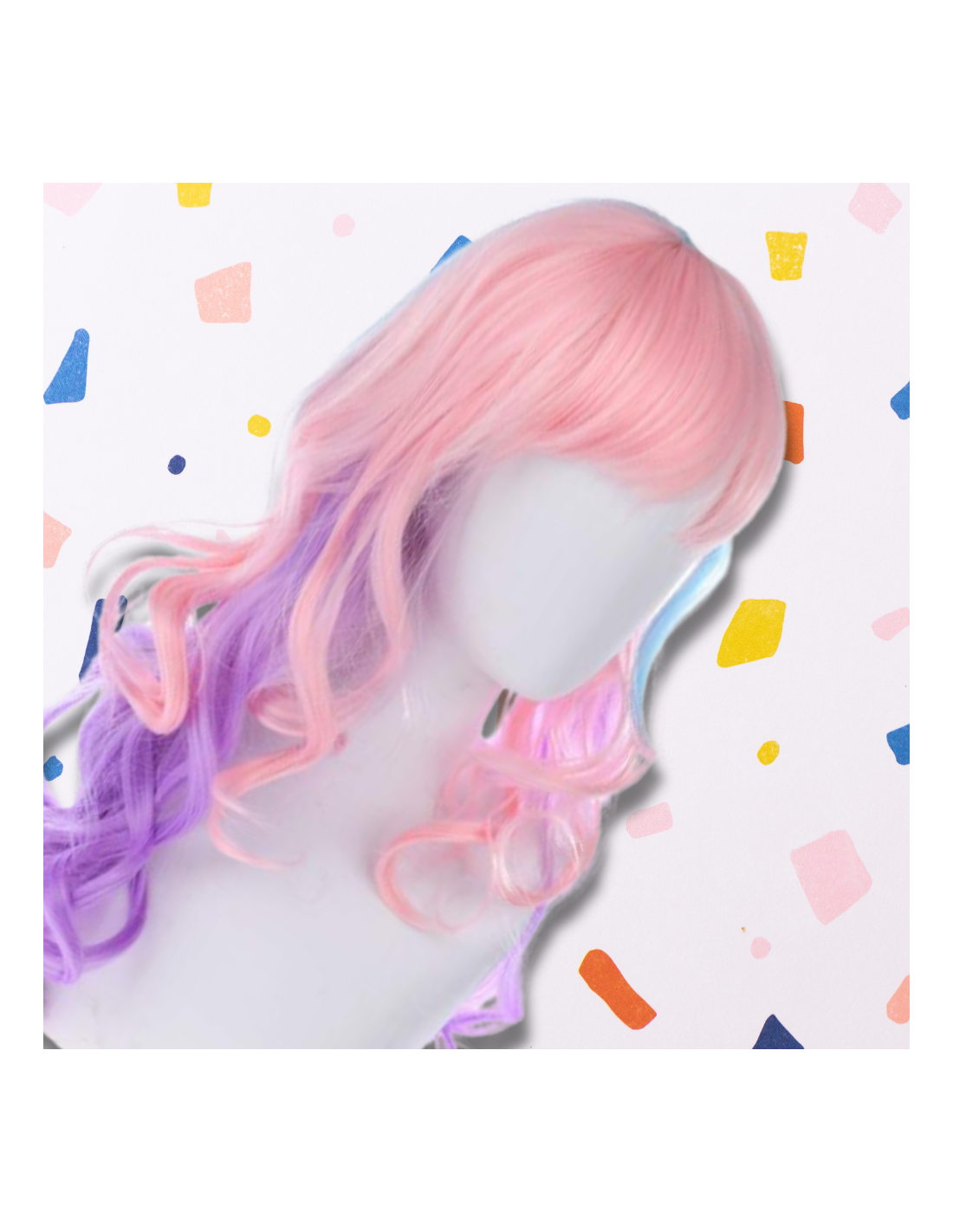 PERUKA WŁOSY DŁUGIE RÓŻOWO FIOLETOWA Z GRZYWKĄ KARNAWAŁ PARTY FOTOBUDKA PANIEŃSKI URODZINY