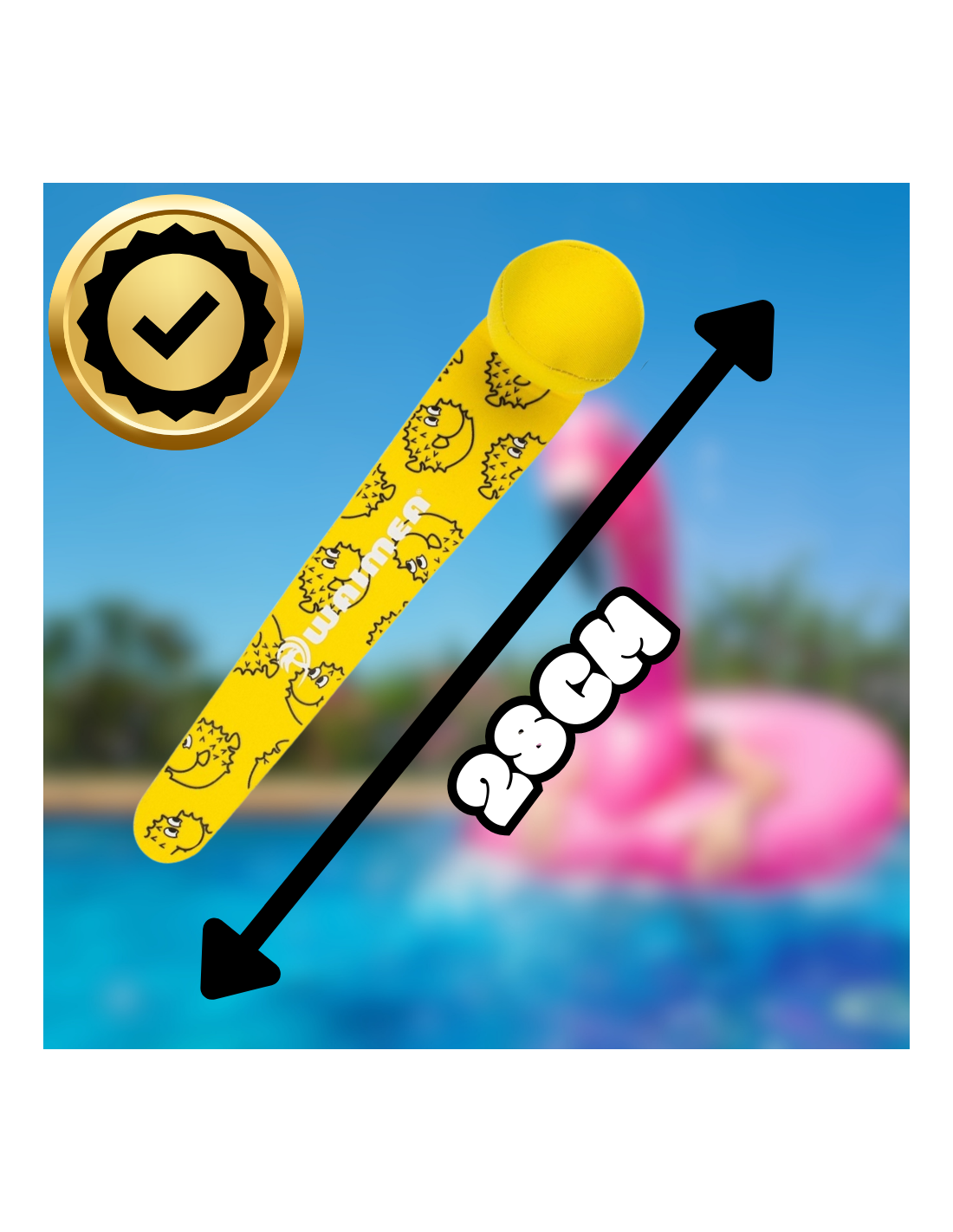 Produkt posiada certyfikat CE oraz spełnia normy bezpieczeństwa EN 71-1/2/3, co potwierdza jego zgodność z wymaganiami dotyczącymi jakości i bezpieczeństwa zabawek dla dzieci. Dzięki temu, pałeczki są bezpieczne do zabawy w wodzie, zarówno w basenie, jak i na plaży.