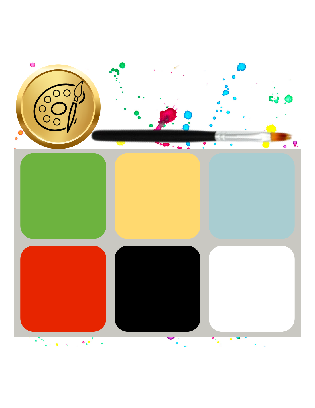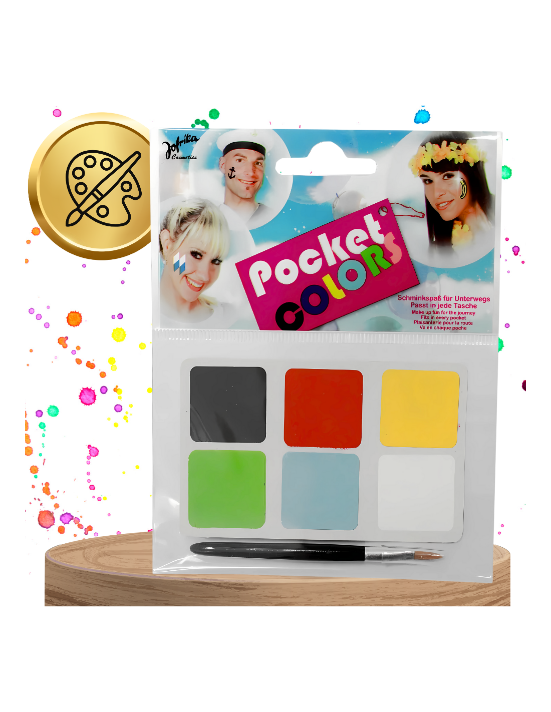 ✅Zestaw zawiera 6 kolorów kosmetyków rozpuszczalnych w wodzie oraz pędzelek.
