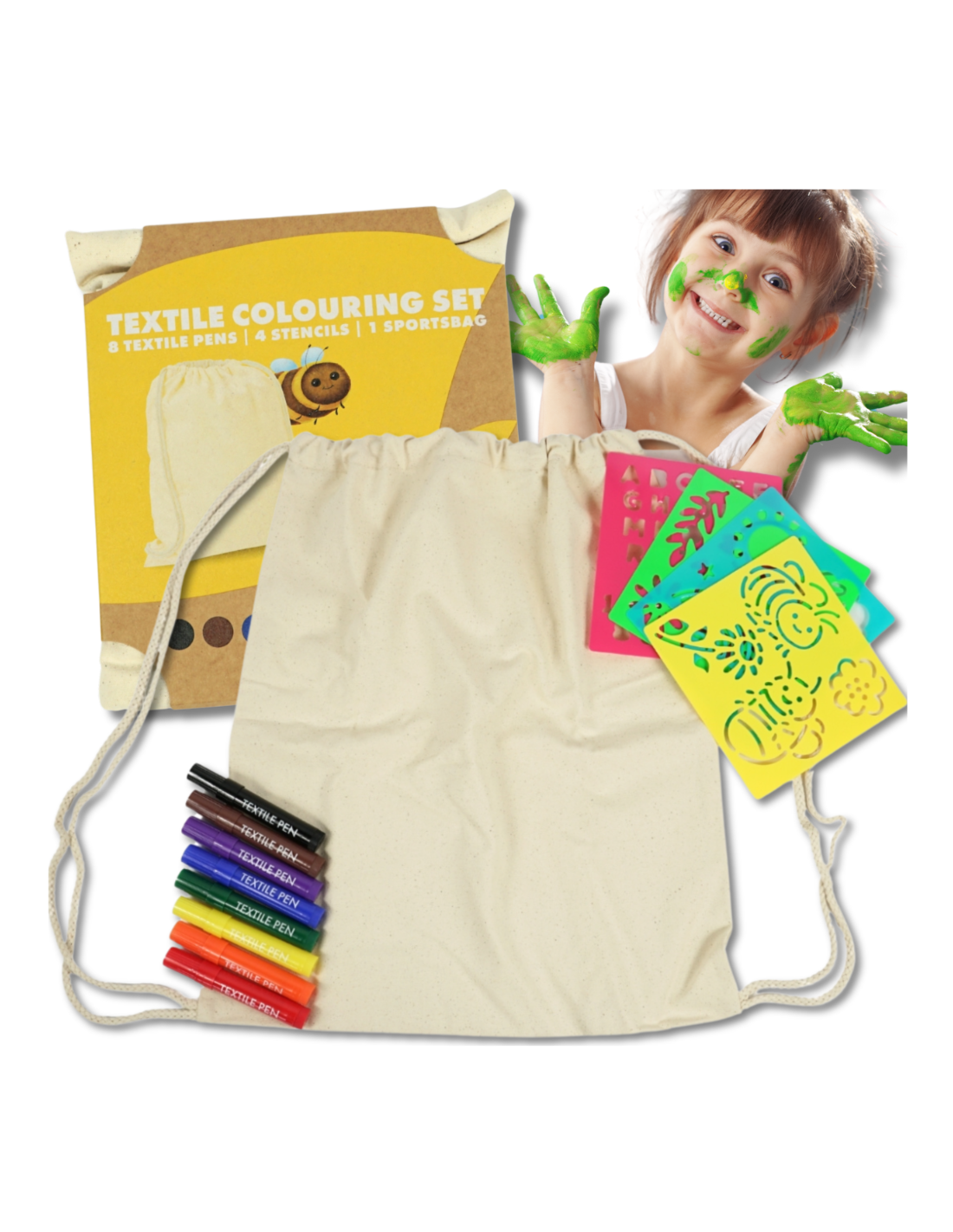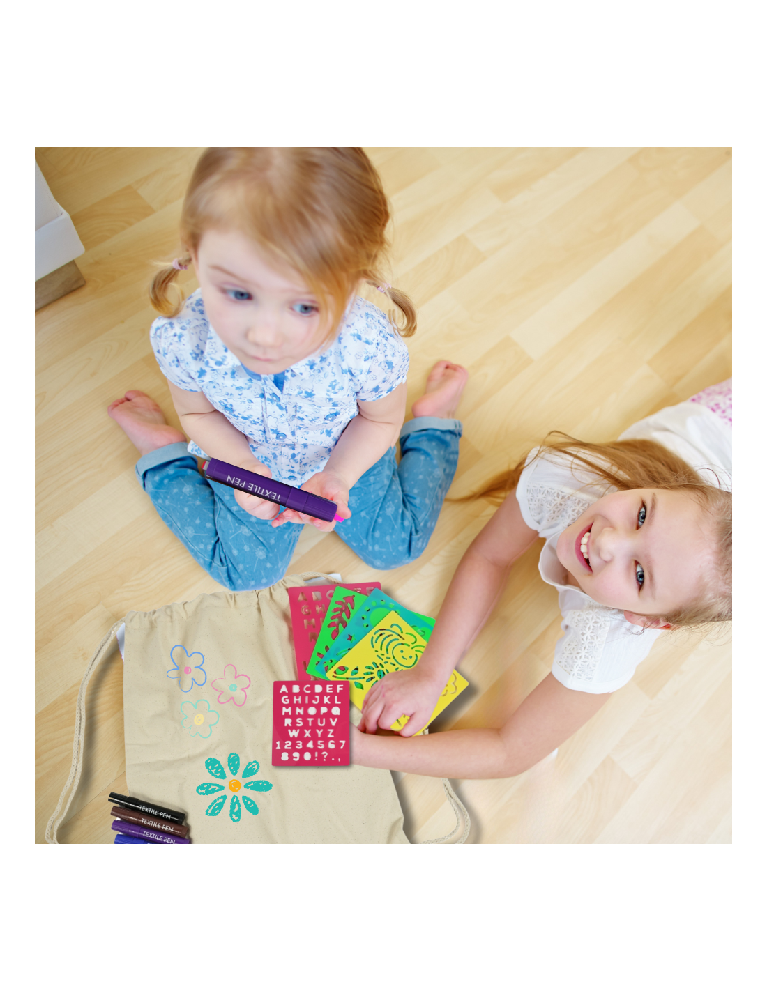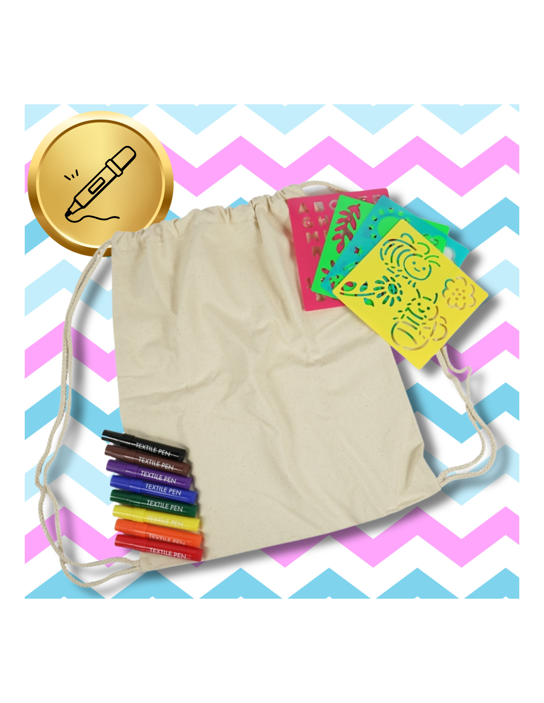 ⭐BAWEŁNIANA TORBA PLECAK WOREK DO KOLOROWANIA DLA DZIECI + 8 PISAKÓW DO KOLOROWANIA + 4 SZABLONY DO SZKOŁY PRACE RĘCZNE