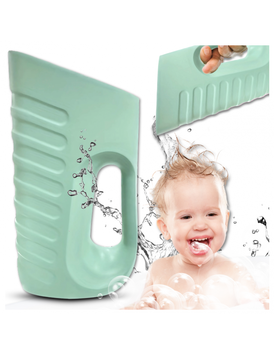 •Kubek kąpielowy z uchwytem – wygodny w użyciu, nie wyślizguje się z ręki