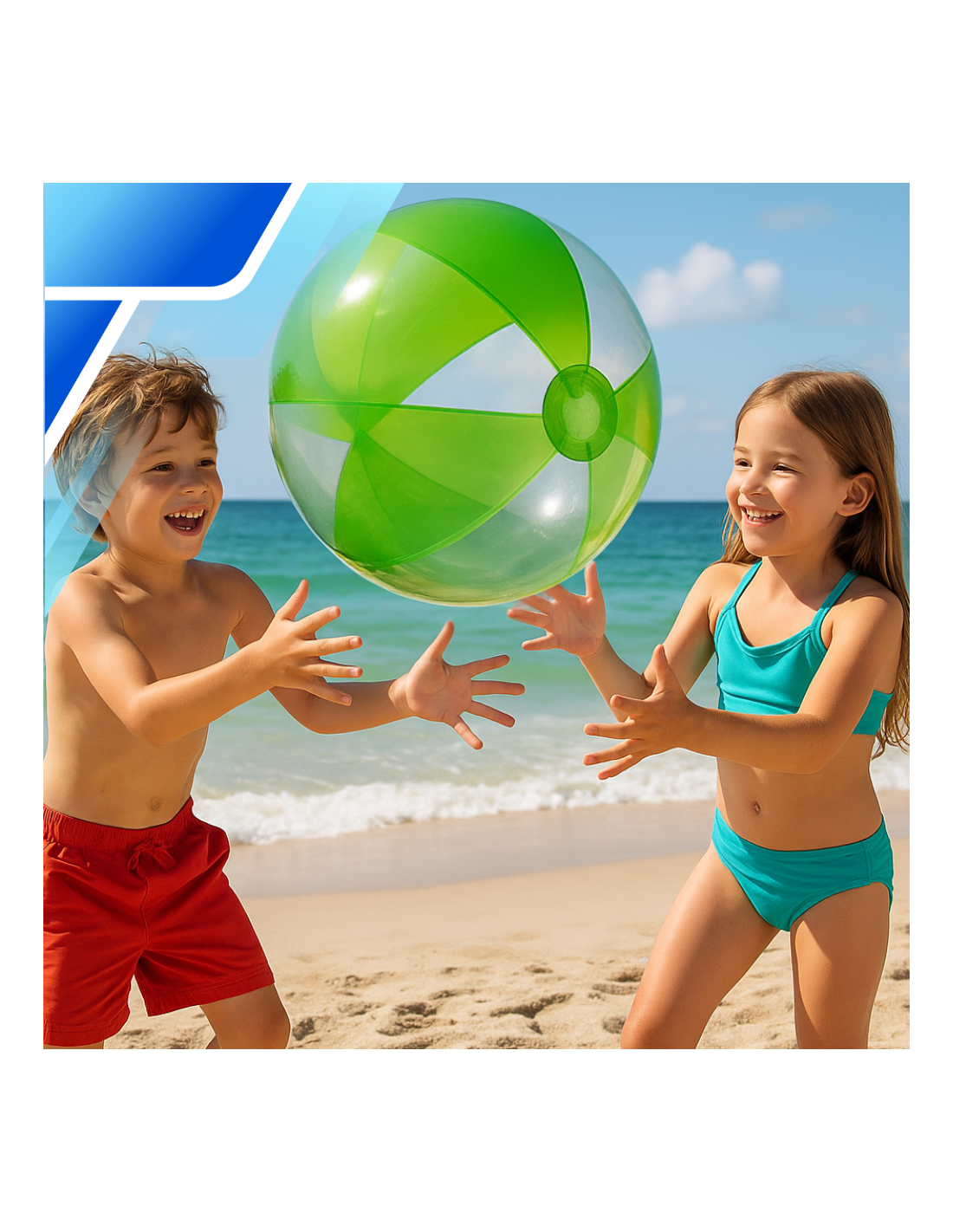 Oferujemy Państwu wysokiej jakości, dmuchaną piłkę plażową, idealną do zabawy w ogrodzie oraz na basenie. Ta duża, zielona piłka o średnicy 53 cm zapewnia niezapomniane chwile spędzone na słońcu, stając się doskonałym towarzyszem zarówno dla dzieci, jak i dorosłych. Wykonana z wytrzymałego materiału, piłka jest odporna na uszkodzenia, co gwarantuje długotrwałe użytkowanie. Jej intensywna zieleń przyciąga wzrok i dodaje energii każdej zabawie. Zainwestuj w radość i aktywność – wybierz naszą piłkę plażową i ciesz się latem w pełni!