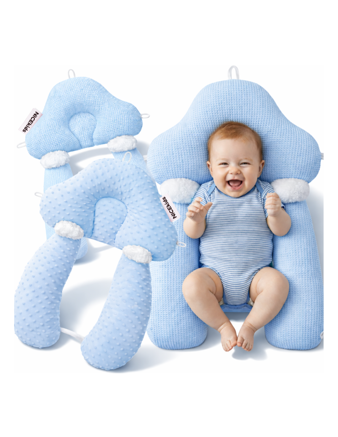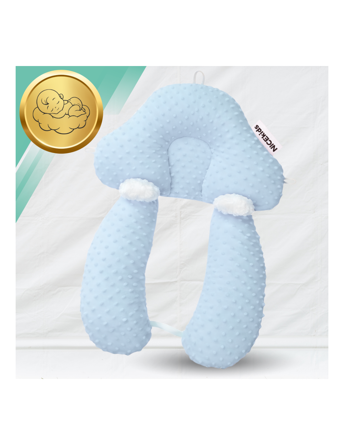 PODUSZKA NICEkids DLA DZIECKA NIEMOWLĄT REGULOWANA DWUSTRONNA STABILIZUJĄCA „gniazdko" ERGONOMICZNA NIEBIESKA