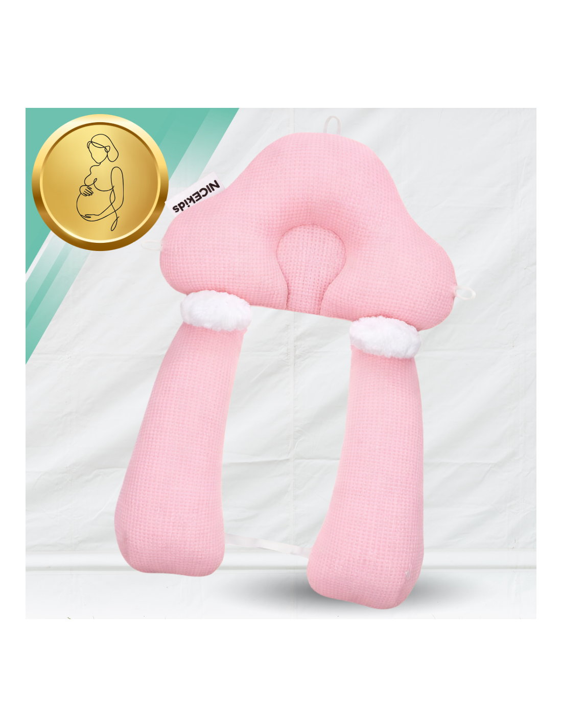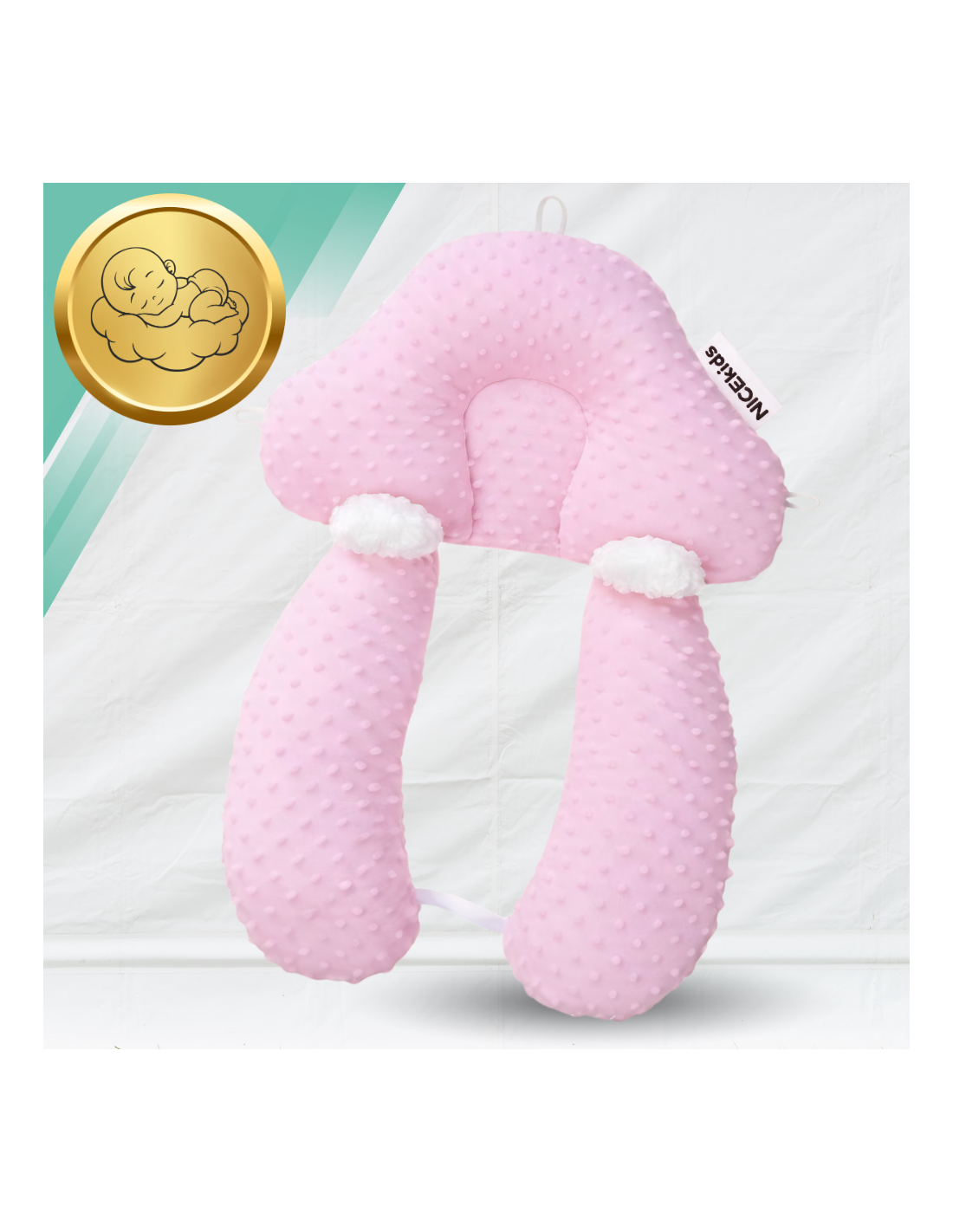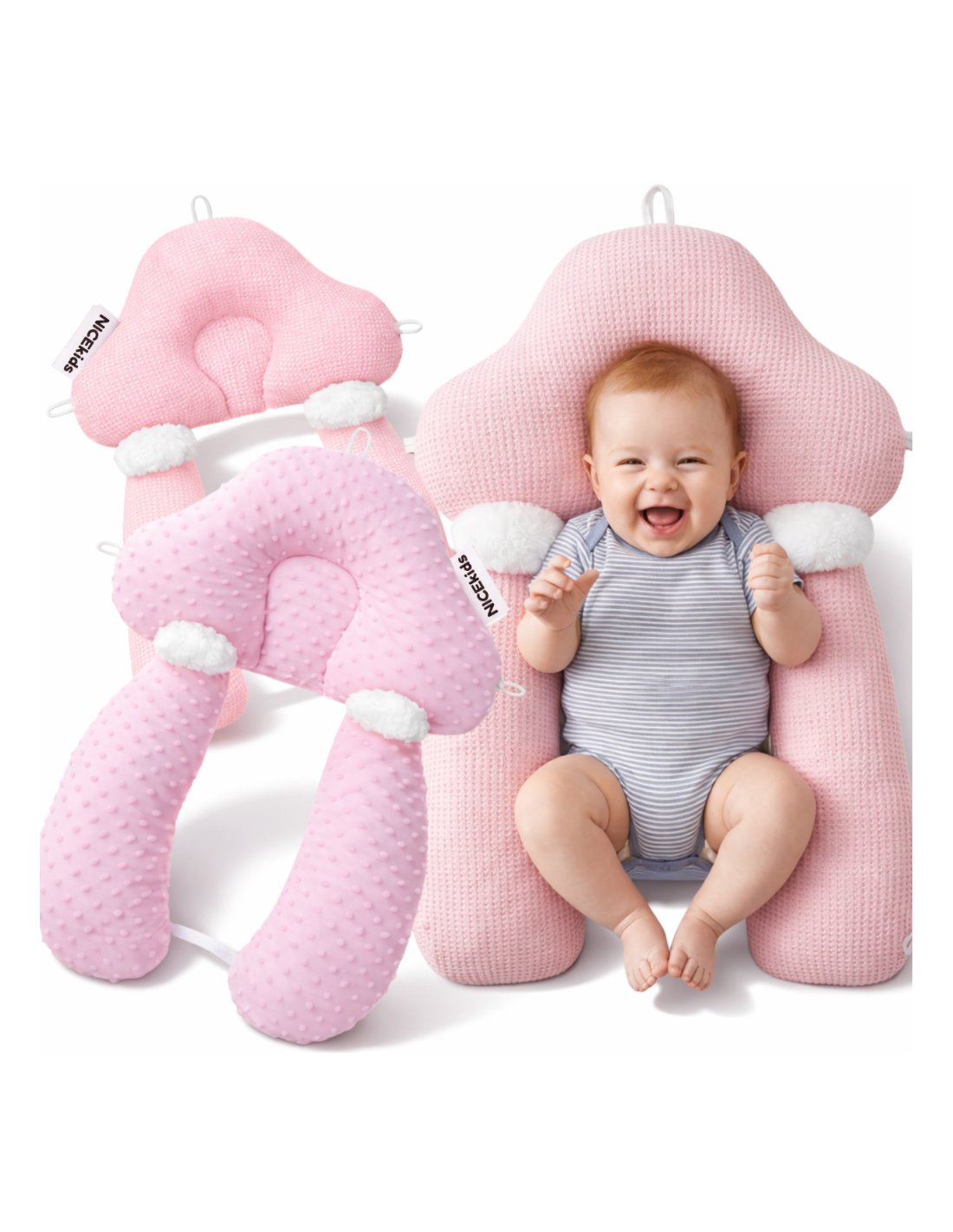 PODUSZKA NICEkids DLA DZIECKA NIEMOWLĄT REGULOWANA DWUSTRONNA STABILIZUJĄCA „gniazdko" ERGONOMICZNA RÓŻOWA
