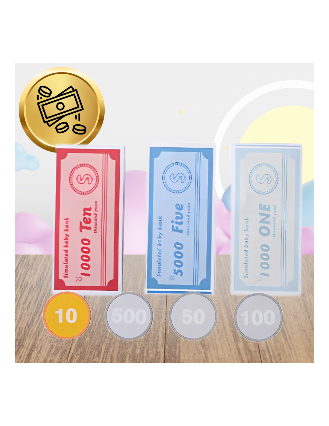2️⃣Zestaw zabawkowych pieniędzy – Zawiera zarówno banknoty, jak i monety, które dzieci mogą używać do zabawy w sprzedawcę i kupującego. Idealne do nauki liczenia i zarządzania pieniędzmi.