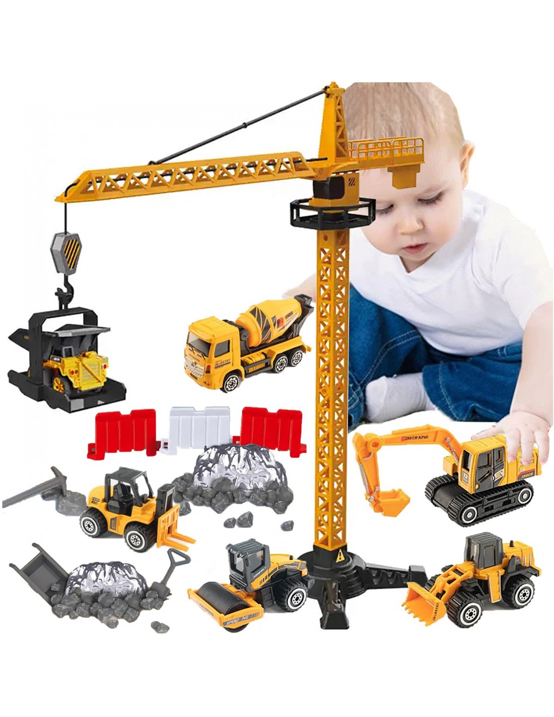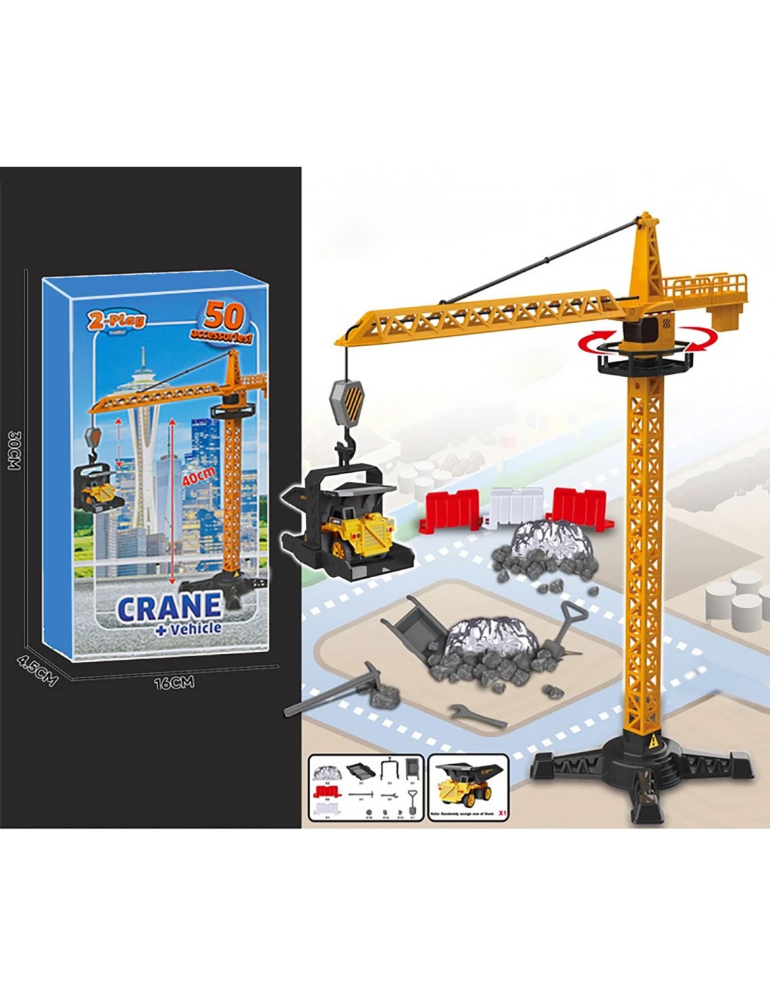DŹWIG ŻURAW BUDOWLANY OBROTOWY RUCHOMY BUDOWA 50 ELEMENTÓW + POJAZD NIESPODZIANKA