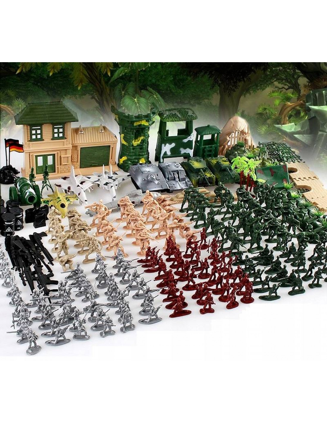 Ten kompletny zestaw wojskowy składa się z 300 elementów, w tym małych żołnierzyków. Każdy żołnierz został wykonany z dbałością o najmniejsze detale, co sprawia, że są one bardzo realistyczne. Wraz z nimi, w zestawie znajduje się baza wojskowa, która służy jako centrum dowodzenia dla tych małych bohaterów.